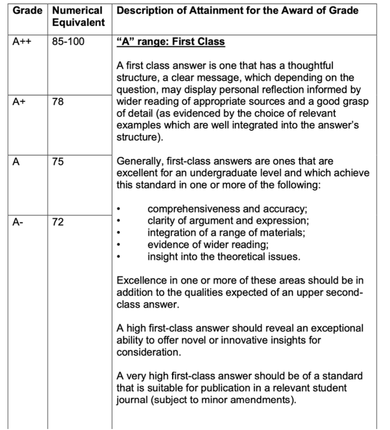 The mark scheme for Law assessments asks us to demonstrate excellent insights into